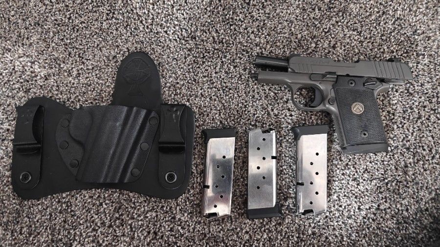 Sig Sauer P938 Legion in pristine condition — fewer than 50 rounds through it. Recently cleaned and lubricated. Includes three factory magazines and a quality IWB holster. No dings, scratches, or functional issues. Stored securely and well maintained — perfect for a collector or someone who wants a reliable, compact 9mm.