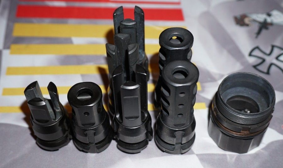 For sale is a package of Dead Air KeyMo muzzle devices in 1/2x28 and a matching Hub compatible mount. Included are 2 muzzle brakes model: DA101, 3 flash hiders model: DA301, and 1 KeyMicro brake model: DA109, and 1 KeyMicro Flash Hider DA115. Comes with a pile of shim. Each muzzle device goes for around $90 new, and the Hub mount goes for around $250. Looking to sell as a set for $400, or I am open to trades. If interested please text me.