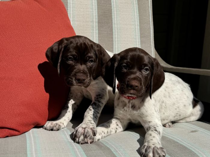 We have two (2) male River Run GSP puppies available: Red and Black Boy ready to go home on Monday, September 8. AKC Litter Registration AKC#SS537112 Harper Run Thomas AKC#SS28019103 River Run Thomas AKC#SS25582501 AKC DNA V10071831 Website: www.RiverRunGSP.com Email: info@RiverRunGSP.com We are located in Meridian, Idaho, and have transported River Run GSP Puppies to several surrounding States! Idaho, Washington State, Oregon, Nevada, Utah – American Kennel Club (AKC) Pre-Paid Registration Fees - American Kennel Club (AKC) Reunite Microchip with Pre-Paid Registration Fees - American Kennel Club (AKC) Welcome Packet - Purina Pro Puppy Welcome Kit - A copy of The Complete Guide to German Shorthaired Pointers: History, Behavior, Training, Fieldwork, Traveling, and Health Care for Your New GSP Puppy - Grass pellet litter box training began at Day 21 Immunization Record Card: - Three (3) rounds of Dewormer (4 week / 6 week / 7 week) - Vaccination shots at 7 weeks - American Kennel Club (AKC) Reunite Microchip data - Dewclaws removed - Docked Tails - Veterinarian check up prior to going home