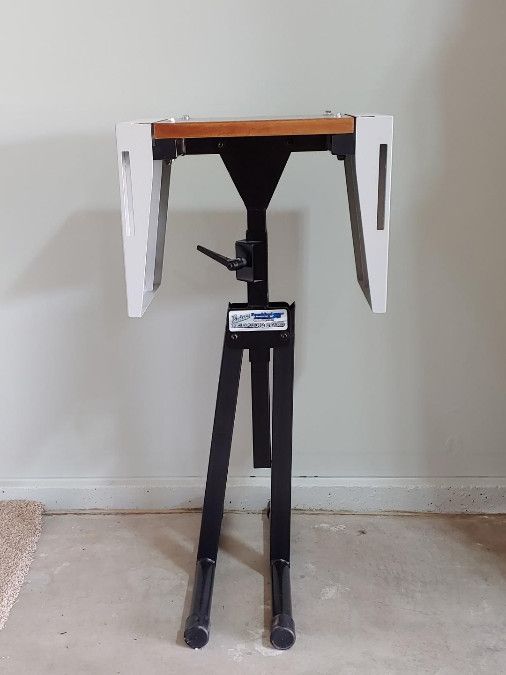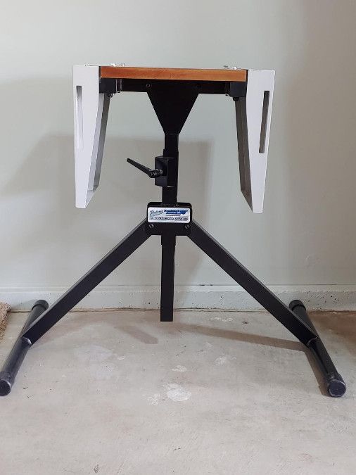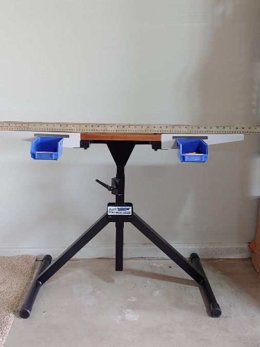 Frankford Arsenal Platinum series Portable Reloading Stand is a rugged, portable, compact, and lightweight workstation for reloading, designed for users with limited space. It features a durable frame that folds for storage and a table top that is adjustable in height and width (Tabletop height adjustable 28.5" to 45" tall, width adjustable from13-39 inches) comes with 2 attachable storage bins.I have used this for about 4 years with my Dillon 550 with room to spare! PRICE REDUCED O,B,O, Please contact by text