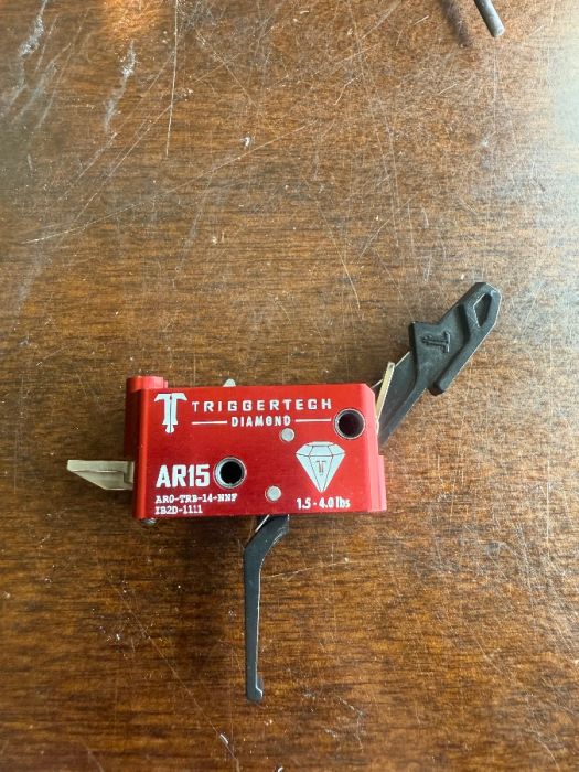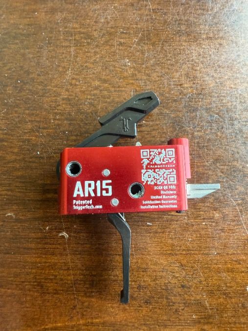 Adjustable from 1.5-4.0 lbs, flat face trigger. bought new at sportsmans last year, installed in gun with 200 rounds through it. Comes in box with user manual, patch and sticker.