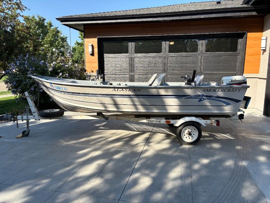 2000 15' Smokercraft fishing/hunting boat for sale. It has a 25 horsepower Johnson motor that runs like at top. This motor was recently serviced by the small motor genius, Gary Cole at Cole's Marine Service. This boat come with the trailer, two outriggers and multiple rod holders. It has a nice 100% intact bimini top and two covers. It also comes with a Humminbird Helix 5 G2 Chirp GPS side sonar fish finder.