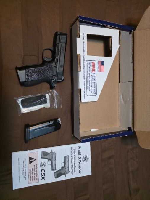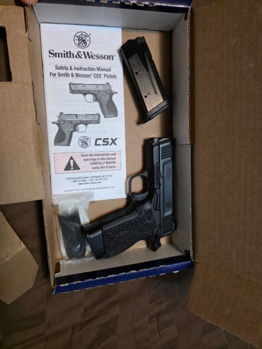 Selling a like new Smith and Wesson CSX for $480. Comes with original box, manual, backstrap, one 10 round & 12 round magazine. Ten round magazine has ndz base pad. Also has ndz textured grip.