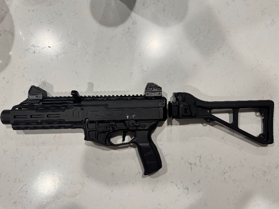 CZ Scorpion 3+ Pistol 9mm Scorpion CZ $1349.99 (New price) - Binary trigger installed $450 (New price) - Upgraded extended charging handle $35 (New price) - Upgraded stock $200 (New Price) Setup is being sold and priced as follows: -$1500 without stock -$1600 with stock No trades and cash only*