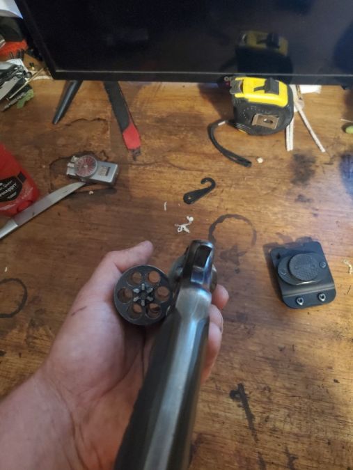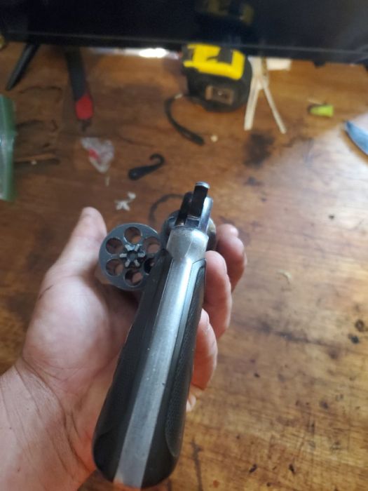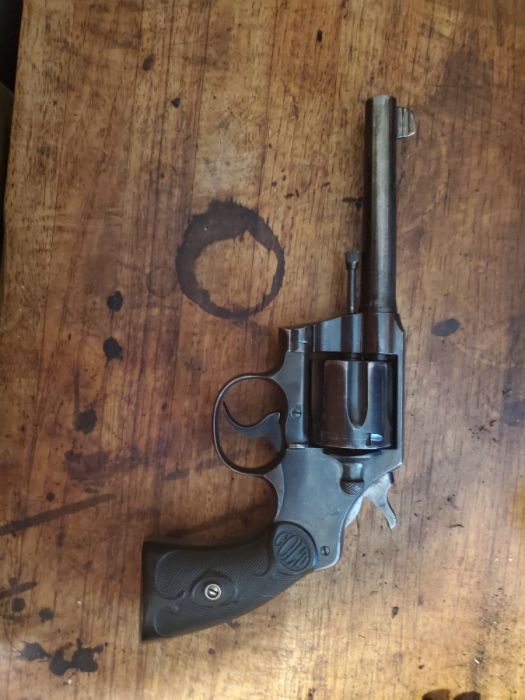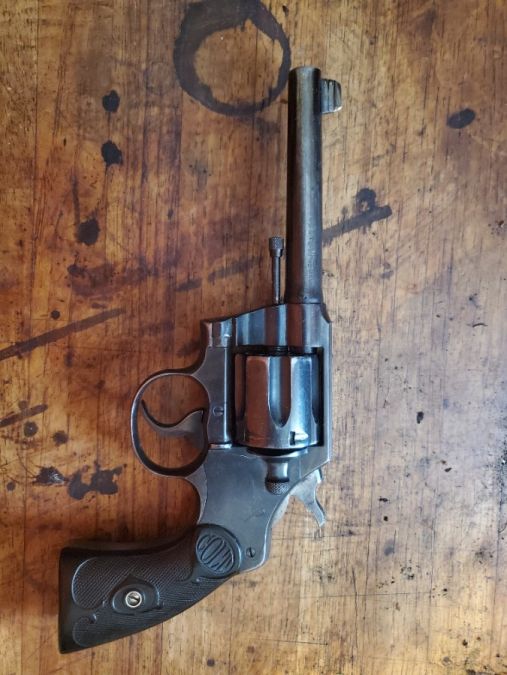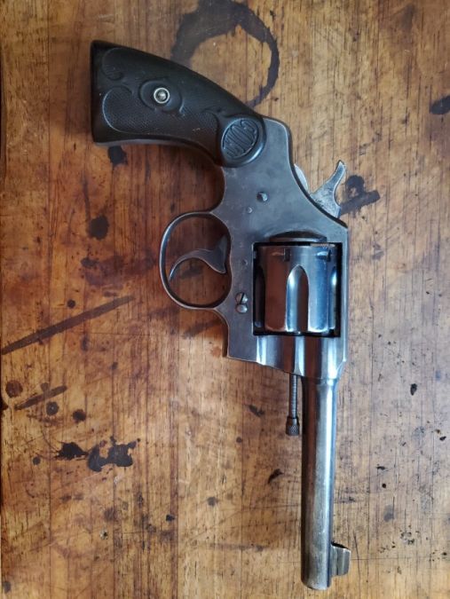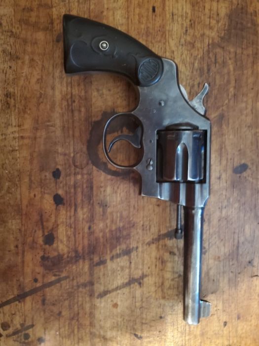 This thing is all original and has a nice patina on it has holster wear but other then that it is in great shape, made in 1922 I have a handful of ammo for it and a speedloader asking 475 or trade for 12 gauge,or 45 colt lever action also would trade for a tokarev pistol text at 208 741 8020 live in council but I can meet halfway if necessary