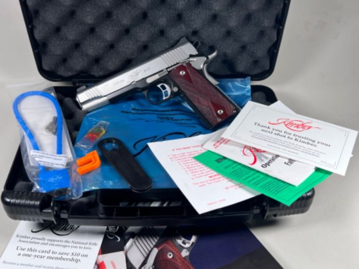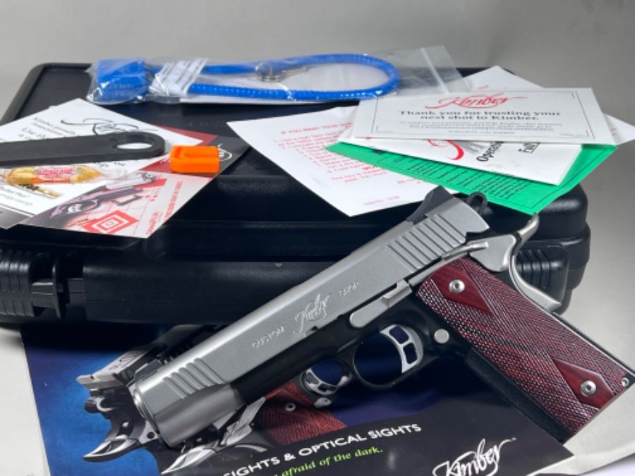 Kimber Custom CDP ll .45 New in original box. Kimber's premier Pistol designed from the ground up for carry and defense. (Custom Defense Package) Packed with features usually only found on high end custom Shop Guns. 5" Match Grade Stainless Barrel, Full Length Guide Rod, Stainless Steel Slide, Ambi Safety, Carry Melt Treatment- All Edges Rounded For Snag Free Draw, Tactical Meprolight Night Sights, Match Barrel and Bushing, Match Trigger,Rosewood Double Diamond Grips. The Condition is new with serial matching box. Mint Without any Bumps Dings or Handling Marks. Cash Only, Face To Face Sale, No Shiping, No Paperwork, No Tax, You Must Have A Valid Driver License or CCW.