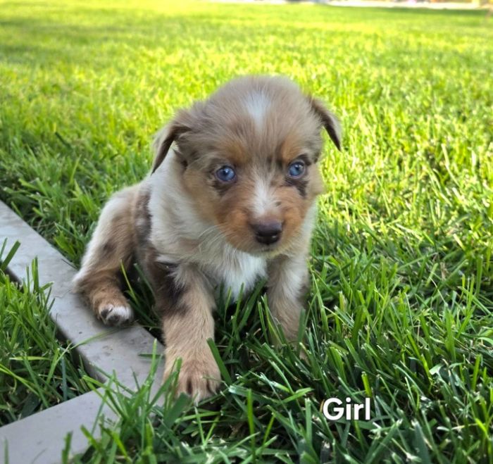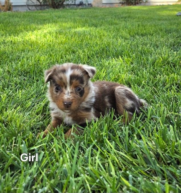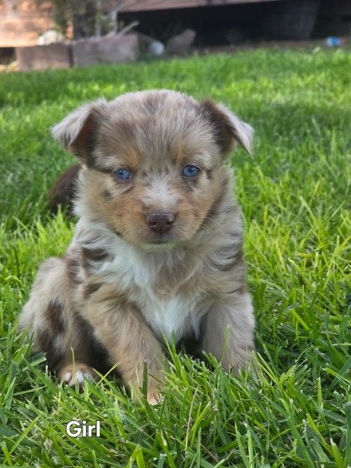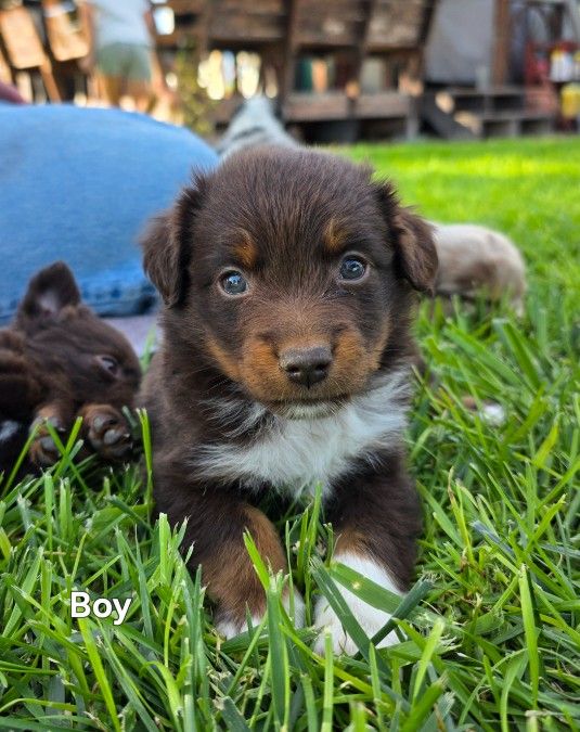 Registered Mini Aussies ready for homes!! Parents Embark tested. Up to date on immunizations and wormer. Tails docked, dews removed. Raised in our home, loves to play outside. Both parents on site.