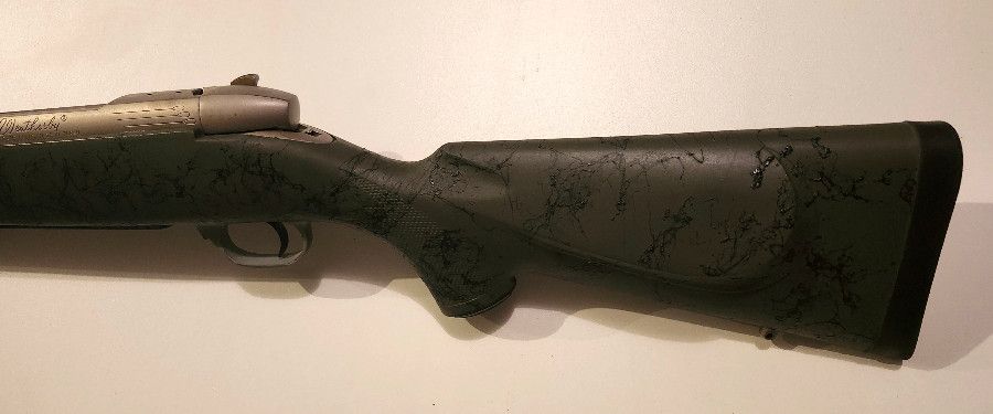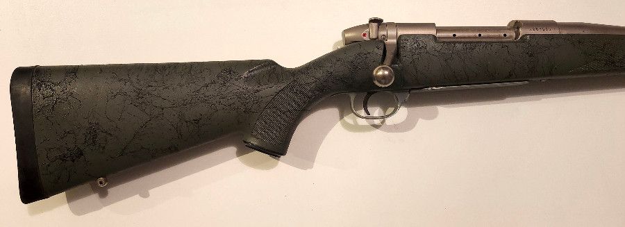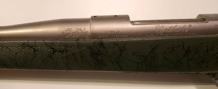 Weatherby Mark V Alaskan 7mm Weatherby Mag caliber Rifle in Excellent used condition. 24 inch barrel with factory installed muzzle break (matching serial numbers). Alaskans are not stainless steel but are carbon steel treated with nickel making them more weather resistant. The injected molded stock was professionally finished olive drab green with black splatter finish. The stock now has the feel and look of a fiberglass stock. Sale Price: $925 ptx (includes cash discount) FFL by appointment only. Serious inquiries only. Call 208-286-7300 or email me at patriotpawnidaho@gmail.com.