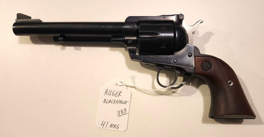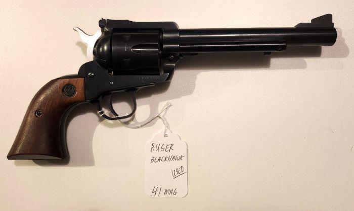 Ruger Blackhawk .41 mag caliber single action 6.5 inch barrel Revolver in Excellent used condition. This is the new model with transfer bar. Manufacture date 1975. Sale Price: $649.99 ptx (includes cash discount) FFL by appointment only. Serious inquiries only. Call 208-286-7300 or email me at patriotpawnidaho@gmail.com.