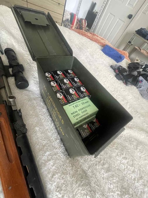 It’s a 7.62 x 39SKS and it’s a Chinese French tickler with bayonet 30 round mag 10 round internal mag scope extra dust cover carrying case and approximately 400 to 500 rounds Price obo