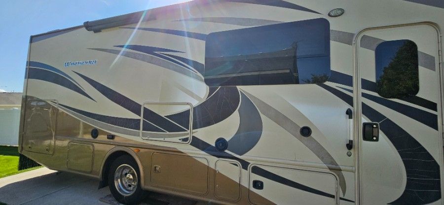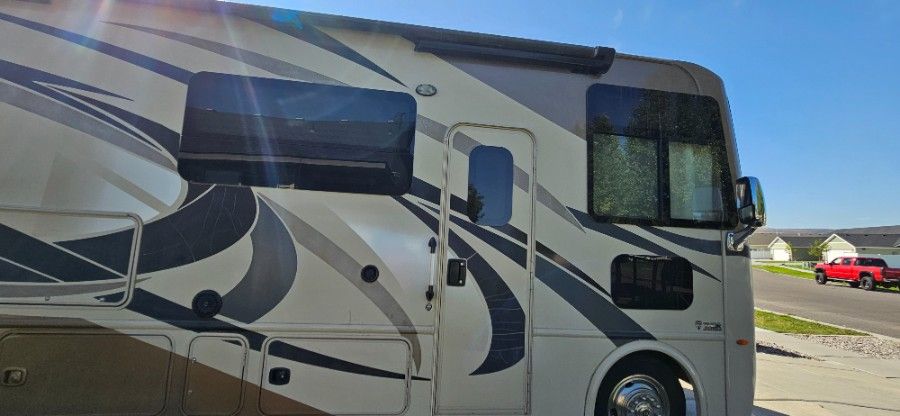 Ford V10 5 Speed, Full Length Slide, Outside Kitchen and TV. 5.5 KW generator, Solar to run TV,s, 2 Air Conditioners Hitch and Braking System