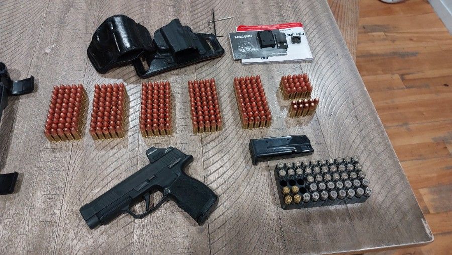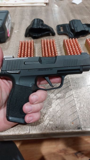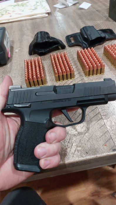 Sale includes: Sig P365 9mm pistol Holosun HS407K Reflex Sight Rear night sights p365 xray X2- 12rd magazines X2- OWB holsters AMMO- x270 115grain ball ammo (blazer) x9 115grain (flat tip) ball ammo (remington) x27 124 grain VCrown hollow point ammo (sig) x4 +p 124grain hollow point ammo (sig) x15 golden saber +P 9mm ammo hollopoint (remington) Also comes with a Sig pistol hardcase. One owner , perchased 2023 , very good condition. It was my wifes home defence/car gun. She carried it a few times but it was a little too large, now she owns a smaller 380. Call or message me at 208-891-1377 if I dont pick up I will try and get back to you as soon as possible. (not interested in trading) Thanks
