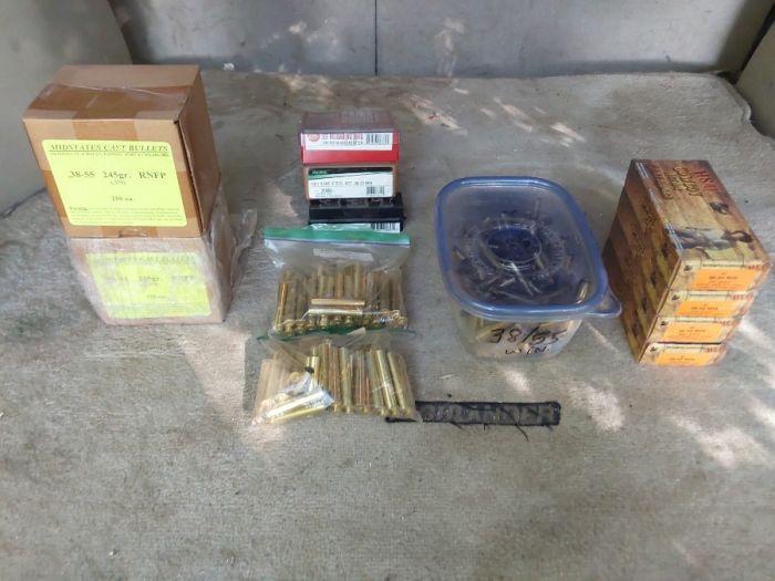 Winchester 38-55 legendary frontiersman model 94 5 boxes factory ammo . Reloading stuff about 300 pieces of brass, 500 bullets, 2 sets of dies Rcbs and Lee $900 cash OBO cash