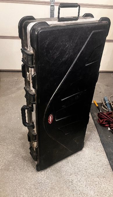 SKB double bow hard case TSA approved with double locks handle and rolling wheels. Only used twice in trips to Africa and Canada. Excellent condition. It’s goes for $389 new.