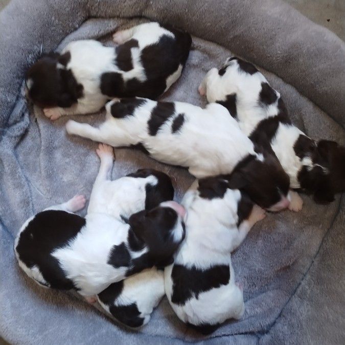 We are excited for this litter. We have three tri-color pups. One male and two females. There are 5 females and one male all together. They will come with their first vaccinations. They have their tails docked and dew clause off. They will be ready to go home November 9th. We are selling them for $1200. Both parents are hunters. Call or text 2088703792 with any other questions.
