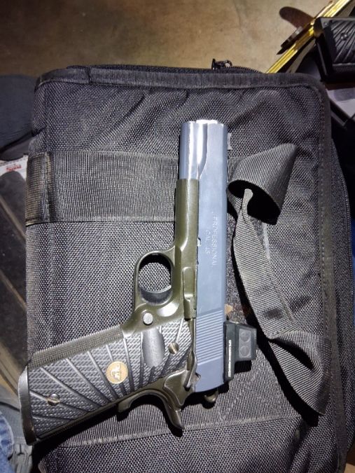 Springfield Professional Custom cut for the Holosun EPS MRS Carry Grey finish on the slide. (No the frame isn't green, crappie phone camera) The Springfield Custom Shop no longer produces the Professional. It is the most accurate handgun I have ever owned. Extremely reliable. I wouldn't sell if it if I didn't have to. So no trades and I am not the desperate so no pawnshop offers. If you are 1911 person you know what you're getting. Take it or leave it. Good luck on finding one of these for sale in the wild.