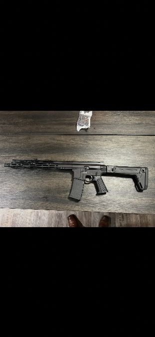 This is a foxtrot Mike front charging ar15 with mag pul folding stock and can be fired from the folded position. Super nice rifle. Asking 800 obo call or text Mike at 208-890-2018