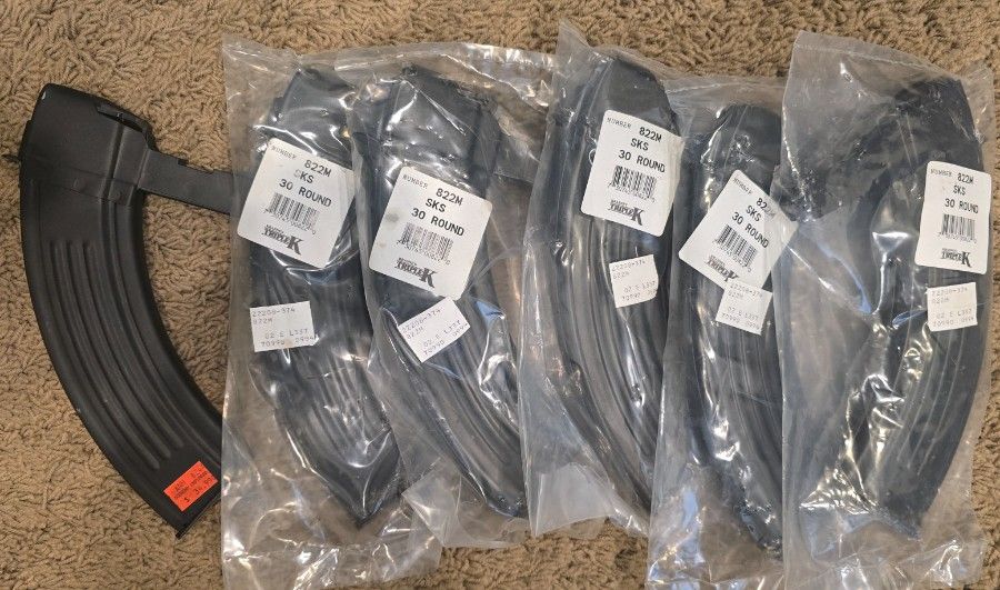 6 total SKS all steel mags including hook. Polymer follower. 5 new in pkg. Cash only. ID resident only. No holds