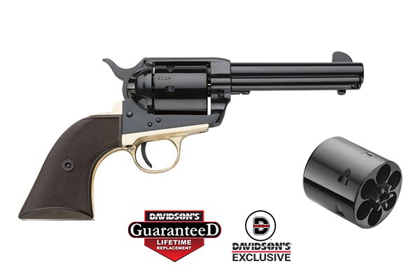 Pietta Guardian Six DUAL - 45LC / 45 Auto Cylinders, 4.75", Single Action, Brown Checkered Polymer Two-Piece Grip, Open Fixed Type: Notch At Rear, Bladed Front, Blue ,Brass Trigger Guard & Backstrap, 6rd, Made by Pietta, Italy; Four Click Hammer. Davidson's Exclusive.
