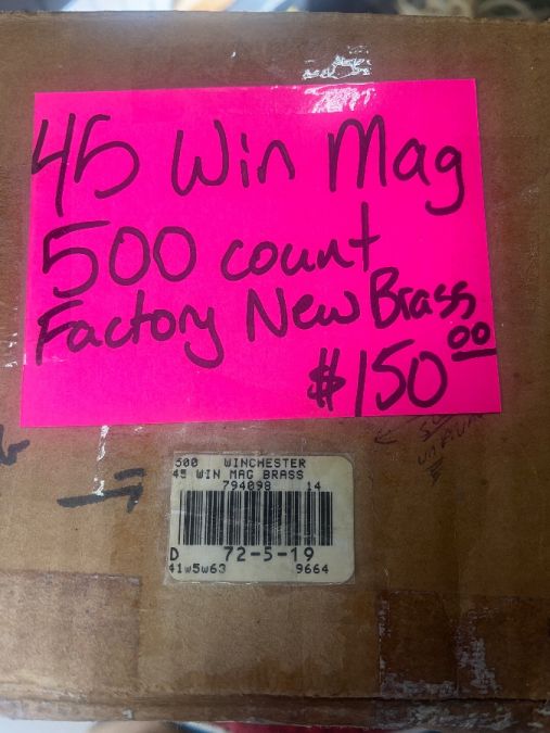 Factory Winchester brass casings 45 WIN MAG 500 count box. First 150.00 gets them. Also have 300 rounds of new factory brass factory primed and ready for reloading. First 100.00 gets them. Open to trades what do you have? Shoot me a text or call 208-841-3745. Thanks for looking