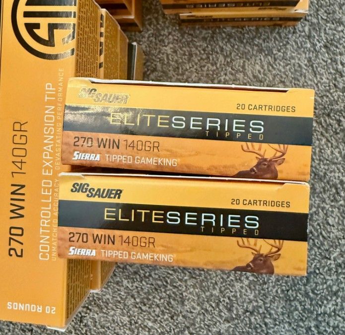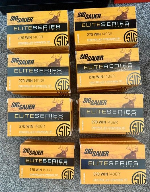 I have 30 boxes of Sig Sauer 140GR controlled expansion tip 270 WIN ammo for sale or trade. Each box contains 20 rounds and has been stored in my temperature controlled safe. Sold the rifle and have the ammo left. It’s great for any big game from deer to elk. I’d be interested in trading for 6.5CM or 300WSM ammo or a good 6.5CM rifle, Winchester pre 64 lever actions or older revolvers. This ammo sells around $45 per box. Willing to do a trade in the $900-$1000 range, which puts it closer to $30 per box. Would also do some quantity discounts with cash, if you’re not looking to purchase all of it. Let me know what you have and any questions.