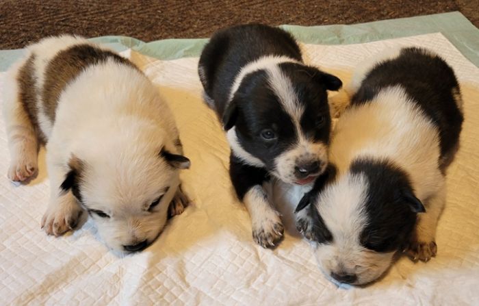 Two Litters Red Heeler and Border Collie Puppies from working parents. Males and females. Born 8/21, ready mid-October. Red Heeler Puppies from working parents. . Females only. Born 8/27, ready mid-October. There will be a rehoming fee to ensure homes that will use their skills and keep up with their energy levels. Parents on premises Please call or email. No texts please.