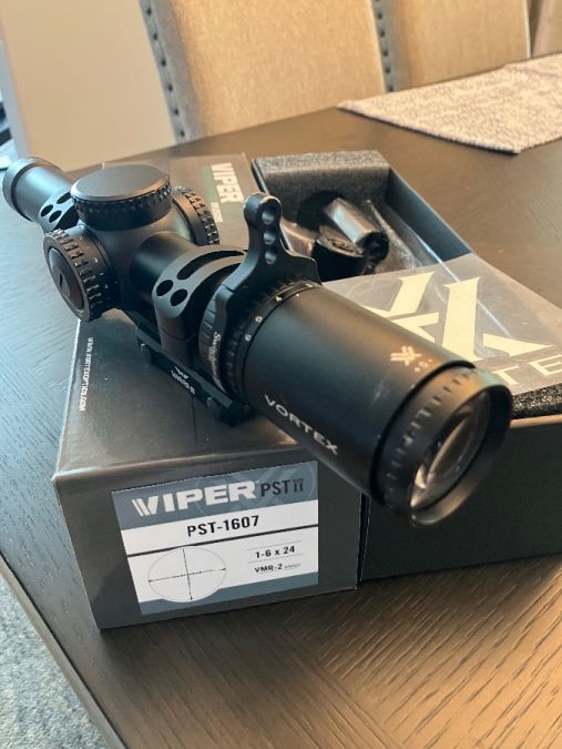 Viper PST-1607 VMR-2 mrad Included: Warne mount, alum switch view, box, papers, decal Sun shade, bikini scope cover, lens cloth. Lifetime warranty