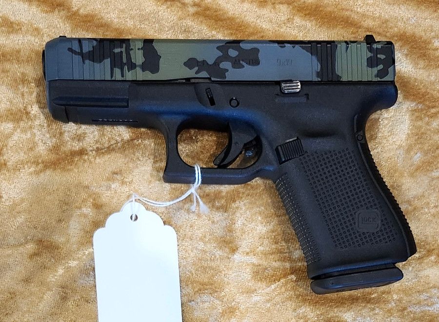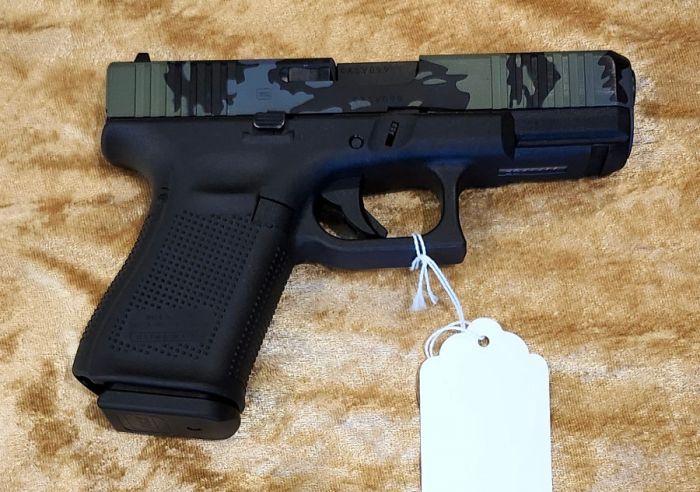 Glock 19 Gen 5 9mm pistol w/box & 2 mags. Has cool graphics on slide, see pics. In Excellent used condition. Has the 2 additional backstraps as well. Sale Price: $399.99 ptx (includes cash or pin debit card discount) FFL by appointment only. Serious inquiries only. Call 208-286-7300 or email me at patriotpawnidaho@gmail.com.