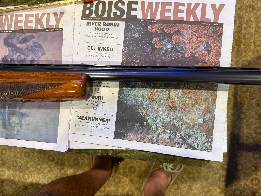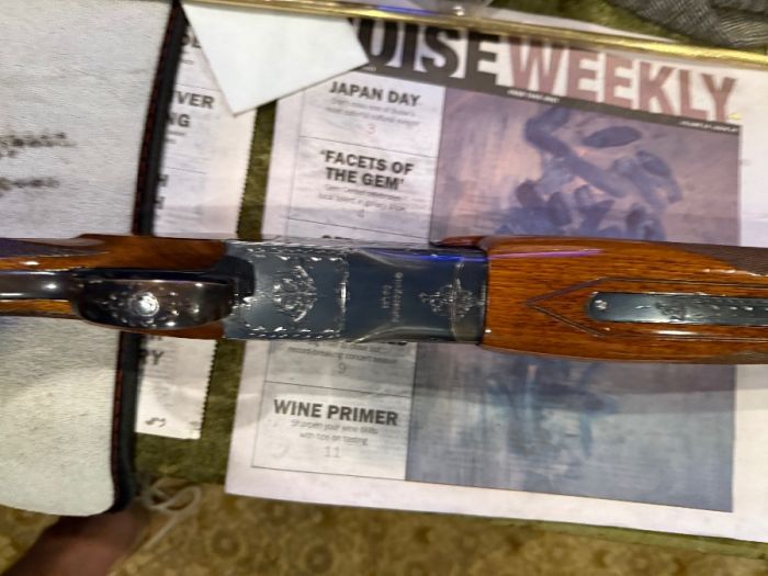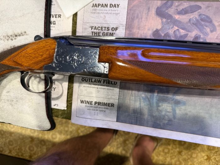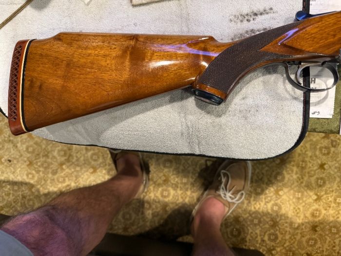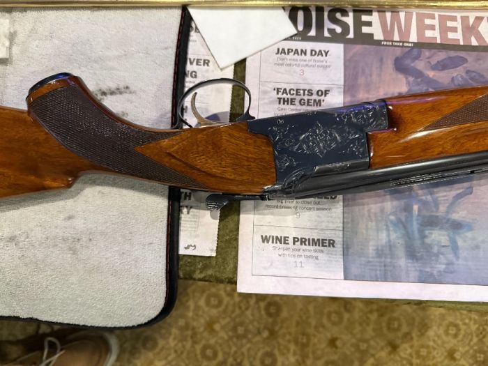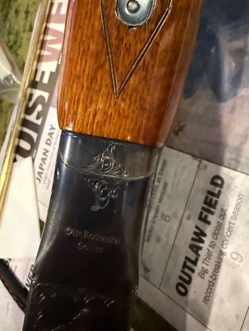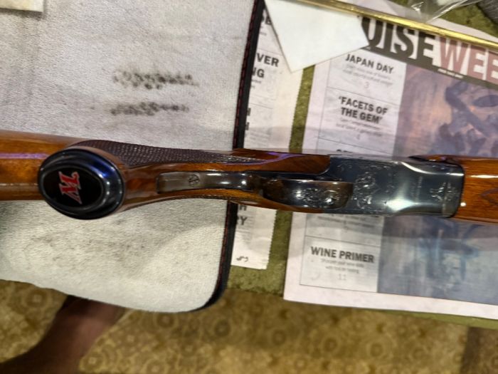 Winchester single barrel trap gun 12ga. 90t% to 95% conditions Light handling scratches on stock and some bluing wear under the action from holding the gun while waiting too shoot. Over all conditions Very Good. Fixed Full choke.