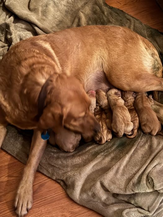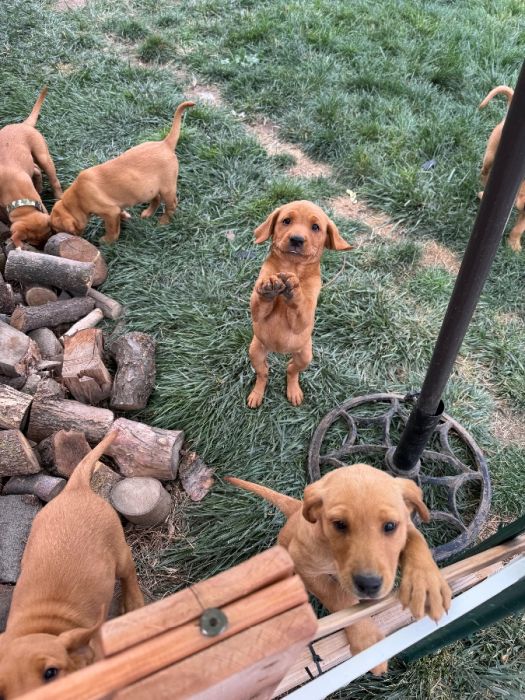 4 female 5 male AKC red labs. First shots dewormed .Parents onsite genealogy available. Excellent hunting and family dogs.