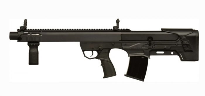 GFORCE ARMS BULLPUP a short and handy Shotgun in the classic bullpup configuration (action and magazine behind the trigger). Bullpup shotguns accommodate a longer barrel without adding unnecessary length, and allow you to hold the weapon closer to your body. At only 3 inches longer than the Mossberg 590 Shockwave, The 29.5-inch GFBP is ideal for the narrow corridors of home defense and tactical use. GFBP bullpup shotgun is compatible with MKA-1919 magazines and accepts 2 3/4 and 3-inch 12ga ammo. The GFBP features adjustable flip-up sights, as well as a bottom Picatinny rail for mounting accessories.