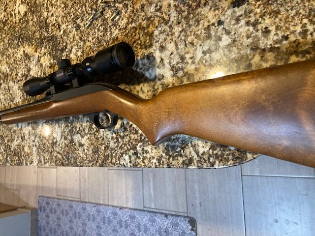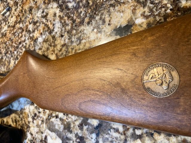 Marlin 60W 22LR with inlaid "coin" in stock stating "SAFETY ETHICS SPORTSMANSHIP". Barska 3X9 scope, both in fantastic Like new condition. Another safe queen that I don't even remember firing. Time to move on. Text is best