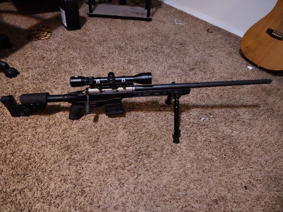 Savage 6.5 creedmoor 24in threaded barre. Xlr chassis. utg bipods. 10 round magazine and oversized bolt handle. Also have h4350. Brass and 140gr eldm projectiles for sale. Asking 1000 for the gun.