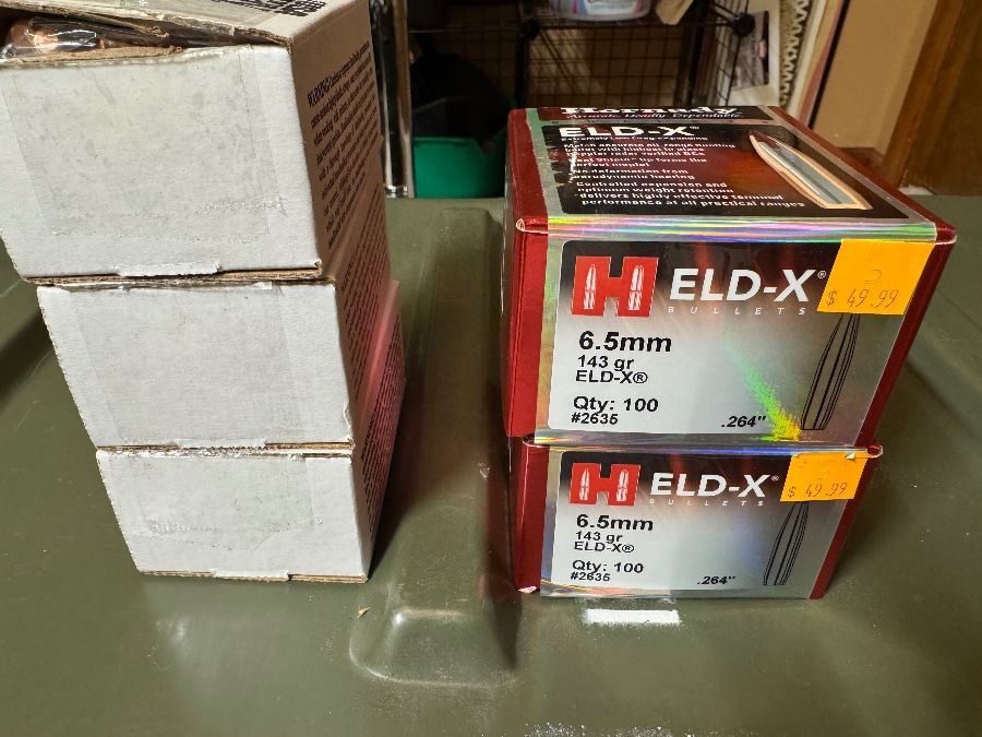 Have 500+ bullets. 200 are unopened factory boxes and 300+ are the factory seconds from MidwayUSA. They have shot the same and look the same for the 200+ rounds I used of them. Asking $150 or trade for some 100-123 grain 6.5 bullets to use in a Grendel.