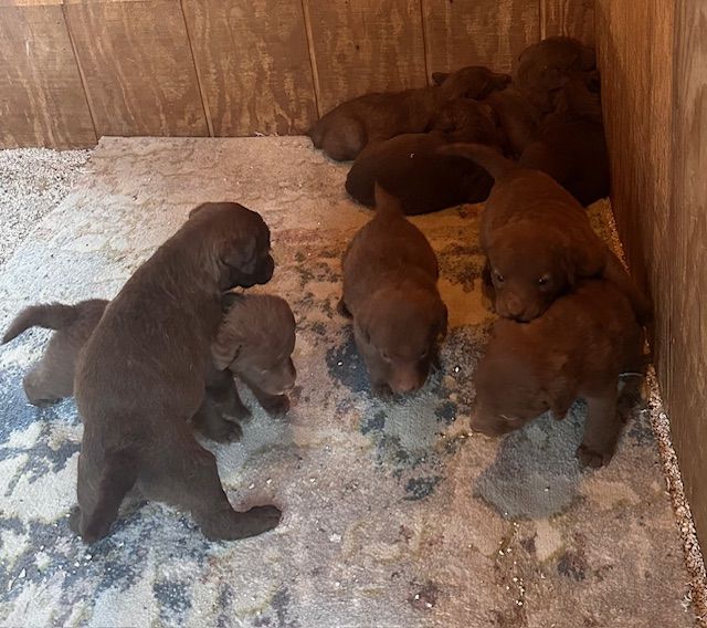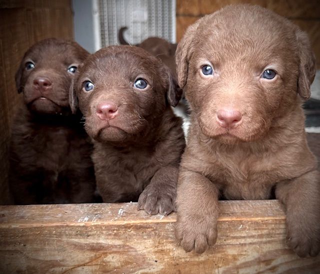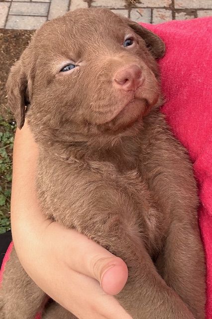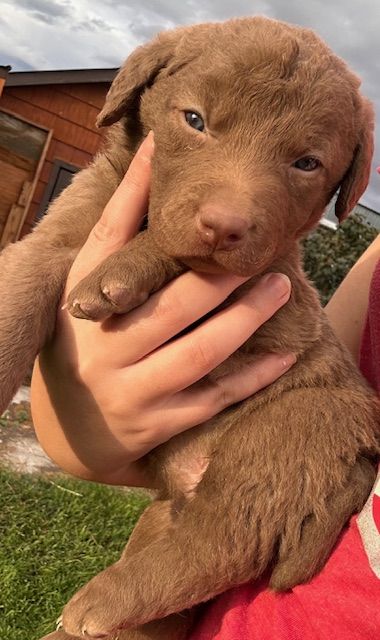 Chesapeake puppies born Sept 1st, 2025. Both parents are our pets and are healthy and active, AKC registered. The Sire is OFA certified, microchipped. Both Parent have been genetically tested. The puppies will see the Vet, get first shots and wormed. They will be ready to have a loving home on Nov. 1st. Puppies will come with AKC registration papers. There are 5 male and 6 females. Have any questions text or call for more info. 319-931-5933.