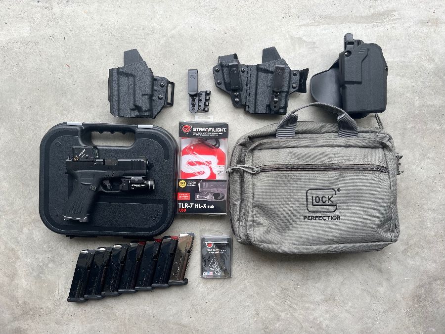 Glock 43X COA with Streamlight TLR-7 HL-X Sub, Shield Arms mag release, mag well, and 7 mags, Overwatch Precision Poly-Dat trigger and stock Glock trigger, OEM case and Glock range bag, Safariland and Trexarms holsters all included. Ask for more pictures. No trades.