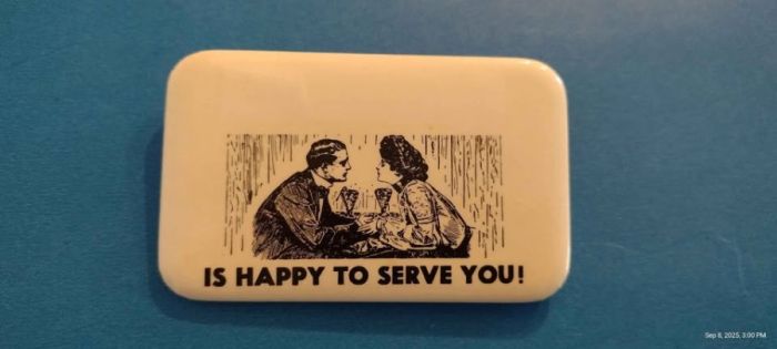 Genuine Farrell's Ice Cream Parlor Vintage Name Badge Pin Back 1970s Sunnyvale, CA Farrell's Any questions please message I'm happy to help! ☮️💜☕