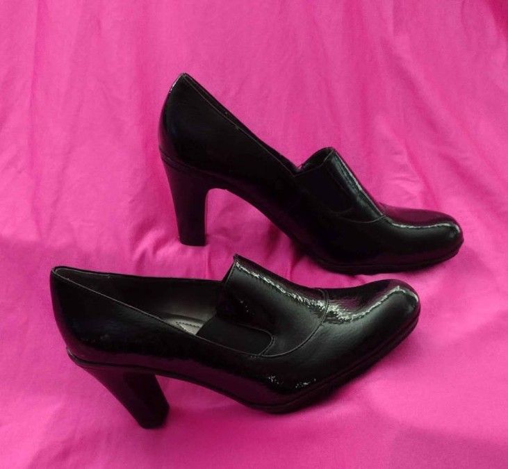 Mootsies Tootsies Dress Shoes Vintage Women's Black Leather Pumps High Heels Chunky 2 1/2" Block Heel Slip on with Elastic Ease Women's Shoe Size 8 M These pumps are beautiful quality and are in excellent condition.