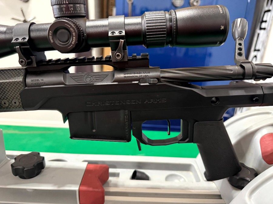 Christensen Arms Modern Precision Rifle 6.5 PRC Fired twice (less than 2 boxes total). Once to zero in and hunted last year with it. Shot a 1/2" group with Hornady Precision Hunter! Scope, rings, suppressor and SG Pulse NOT included! Have original box & muzzle brake. $1850 Firm, Cash only, no trades! MANUFACTURER: Christensen Arms FAMILY: MPR Series MODEL: Modern Precision Rifle TYPE: Rifle ITEM GROUP: Tactical Bolt Action Rifles ACTION: Bolt Action CALIBER/GAUGE: 6.5 PRC FINISH: Black Anodized FINISH TYPE: Black STOCK: Tactical Stock STOCK/GRIPS: Adj. w/Carbon Fiber Handguard BARREL: 24" RATE-OF-TWIST: 1-in-8" CAPACITY: 5 + 1 # OF MAGAZINES: 1 MAG DESCRIPTION: 5 rd. SIGHTS: None SIGHT TYPE: None THREAD PATTERN: 5/8x24 SPECIAL FEATURE: Threaded Barrel WEIGHT: 6.9 lbs. SHIPPING WEIGHT: 11.1 lbs. SAFETY FEATURES: Thumb Safety ADDL INFO: AICS Comp. Detachable Magazine ADDL INFO: Flash Forged Technology M-LOK ADDL INFO: Carbon Fiber Wrapped SS Barrel MFG MODEL NO: 801-03006-00 UPC: 810651029295