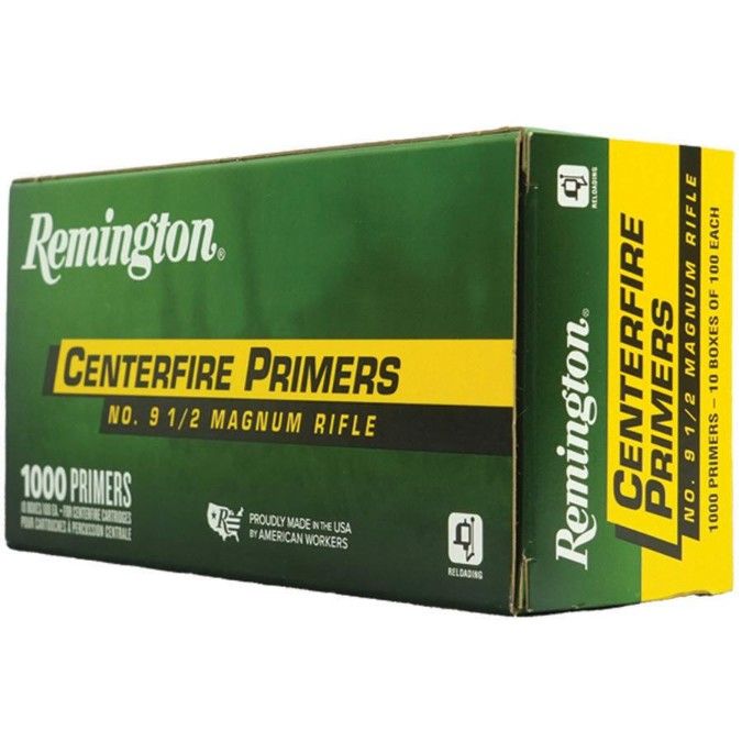 $90 for 1000. These are fresh! Remington Centerfire Large Rifle Primers- 9-1/2 Magnum Rifle Remington 9 1/2M Large Rifle Magnum Primers are engineered for shooters who demand unfailing ignition in extreme environments. Each Remington 9 1/2 M primers is rigorously tested from –20 °F to +150 °F, guaranteeing dependable spark whether you are glassing mule deer in sub-zero winds or hammering steel in blistering summer matches. The hotter flame front reliably lights slow burning magnum powders, stabilising velocities in big-bore cartridges like .300 Win Mag, .338 Lapua, and hard?hitting .375 Ruger. Precision Machined Cups Resist High Pressure Flow Remington controls primer cup dimensions to four decimal places, keeping wall thickness uniform for flawless seating and a secure pressure seal. This meticulous machining prevents cratering and gas leakage under pressures that routinely exceed 60 000 psi in modern magnum rifles. The thicker, work hardened brass also extends bolt face life, making these large rifle magnum primers ideal for both hunting rifles with tight firing pin channels and custom bench rest actions running hot loads. Hot magnum flame reliably ignites slow burn powders for big bore and long range cartridges Primer cup dimensions held to 0.0001" for perfect seating and high pressure integrity Tripod anvil design enlarges strike area, cutting misfires in cold or fouled actions Tested for dependable spark across –20 °F to +150 °F operating range Pellet weight controlled to 0.01 g, tightening SD/ES for match grade accuracy Inside every 9 1/2M Magnum Primers sits Remington’s signature tripod anvil—a three leg design offering a larger, more forgiving strike surface. This geometry converts even marginal firing pin blows into sure ignition, a crucial edge when frosty lubricants, fouling, or lightened competition springs threaten reliability. The resulting instant flame cuts lock time variance and keeps extreme spreads tight for predictably flat trajectories at distance. The specially formulated priming mix resists degradation from ambient humidity swings, so unopened bricks remain within spec for years when stored in a cool, dry safe. Hunters who stock ahead of tag draws and match competitors who batch load by lot number alike appreciate the confidence of chemistry proven by decades of Remington QA data.