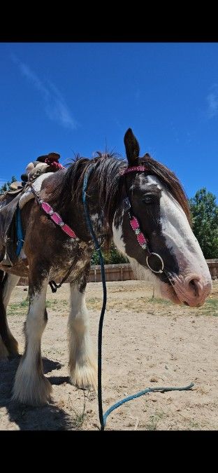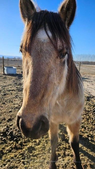 I have a very big, gelding Clydesdale. Around 16 hands, if not a little more. He has huge hoofs, picks up all four. He leads great, is good to catch. He is so sweet and really loves attention. He is not broke. He has been sat on a few times, but he was very nervous. We just took him with us to the forest to ride our horses and had him pony off one of them. He did fine. We just dont have the time to work with him. We've got kids, and life is too busy. He loads into the trailer really good. A good home is a MUST. This guy is a sweetheart, and deserves the best home. He had his teeth done about a year ago at the Emmett Vet. Price might be negotiable to the right home. No trades. Buckskin Mare, she is around 9 years old. She has been ridden and is considered very green. We were told her sister was registered, but they never got her registered (due to a death in their family). We took her and rode her in the forest with us. She went to training for 30 days, but realized the lady had only ridden her a handful of times. She knows her ground work. She picks up all four, saddles, and leads great. She loads into a trailer amazingly. $2500, price may be negotiable to the right home. She is a sweetheart, and a good home is a MUST. She also got her teeth done at the same time as the Clydesdale. She is smaller, id say under 15 hands.