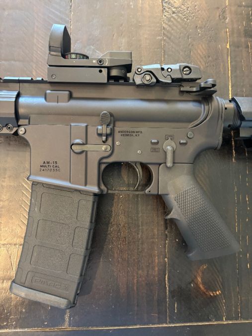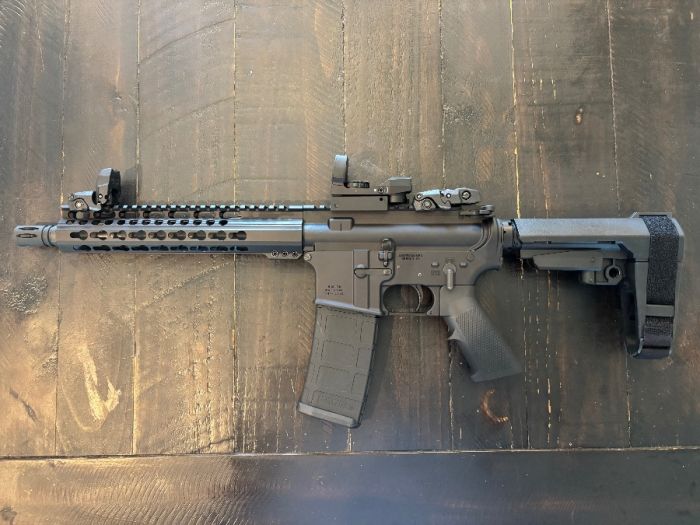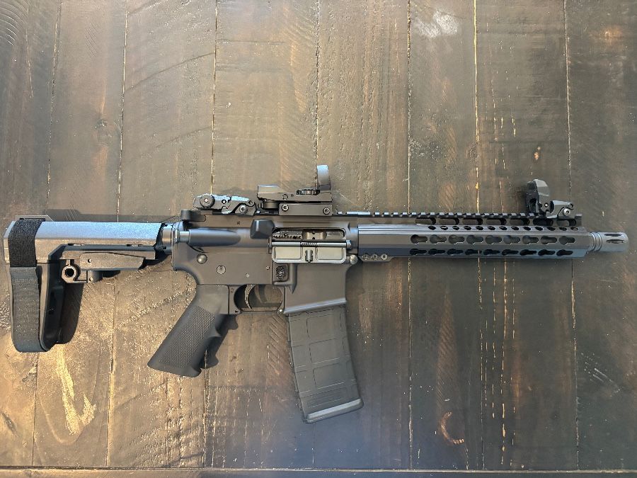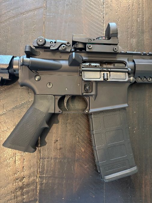 AR 15 Pistol 10.5” Aero ChromeMoly / Phosphate Barreled Upper 5.56 / .223 - Carpenter 158 Bolt - A2 Flash Hider - 1:7 Twist - Front & Rear Backup Sights & Red Dot - SBA3 Adjustable Pistol Brace - Anderson Lower - includes one 30 rd mag - only has 10 rounds through it, runs perfect $750 Firm. May consider trades lemme know what you have. Need to make room in the safe so a few gotta go. Cash only. Must be 21 and able to own / possess a firearm. Located in Star, Text is best (951) 852-3584
