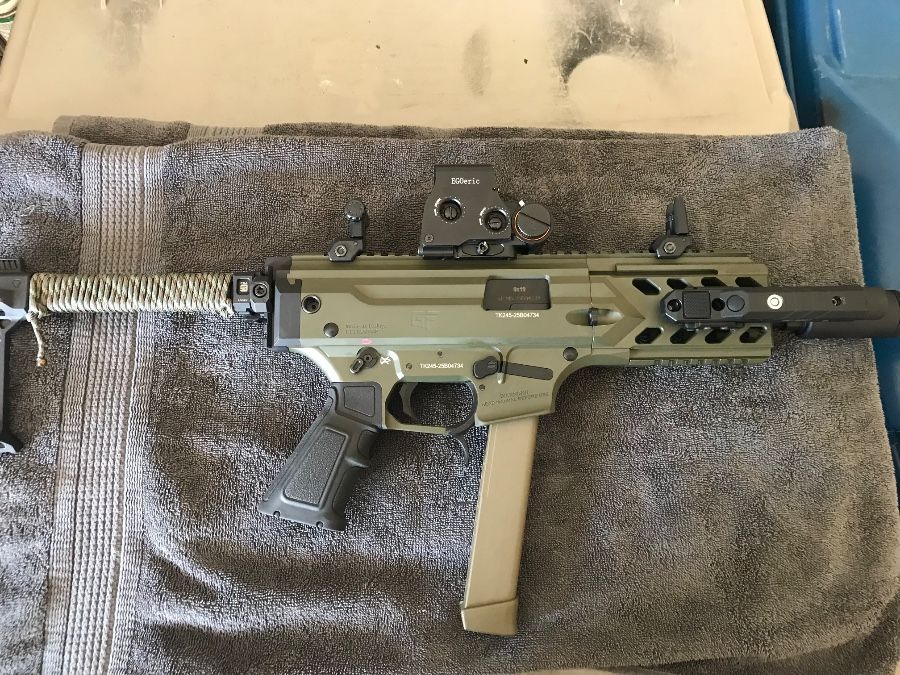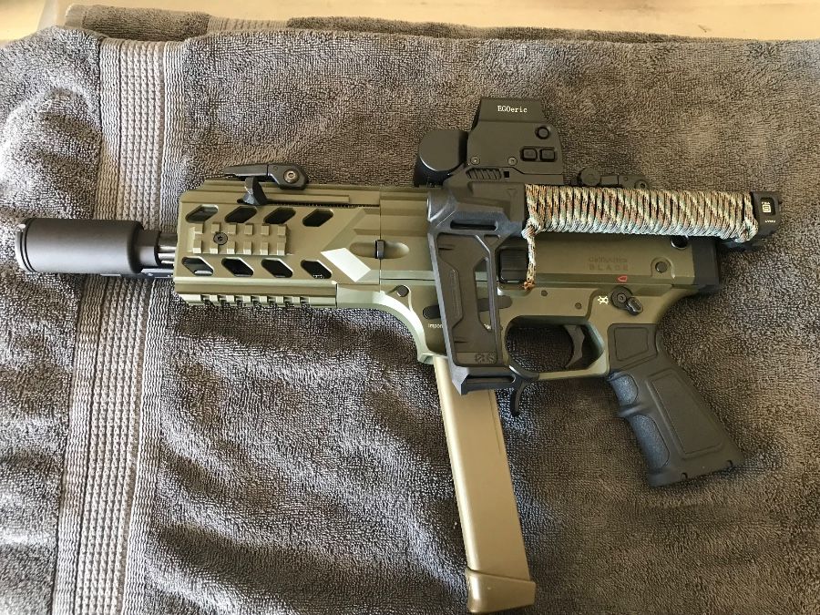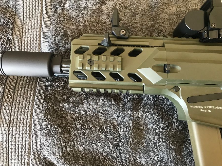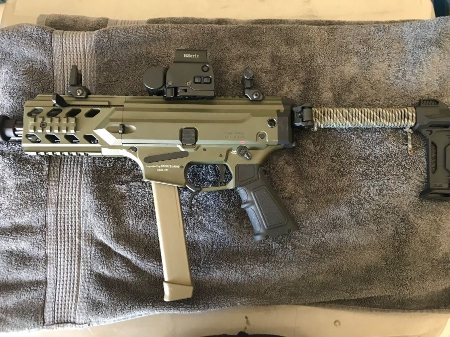 GForce Arms Blade 6 PCC. Chambered In 9mm. All Metal Solid Firearm. FSA Collapsible Brace, Rapped With Para Cord. Flip-Up Sights. KAK Slimline Flash Can. Laser/Light Combo And Red/Green Dot Optic. Function Fired Only. Comes With Owner’s Manual And One 33-Round Magazine. Cash Only, NoTrades. In-Person Transaction.