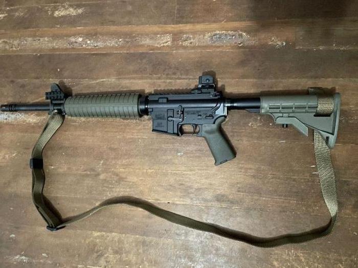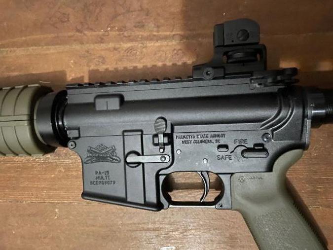 PSA PA 15 mid length gas system and 16” nitride barrel. Chambered in 5.56 with a 1/7 twist. Also include sling, pic rail on the front sight, rear sight, and MOE handgrip.