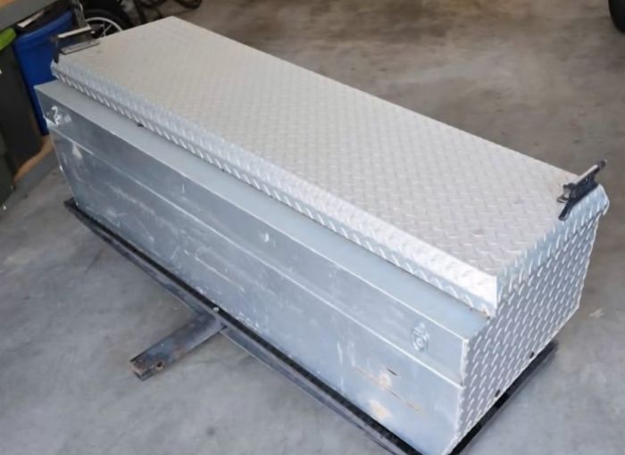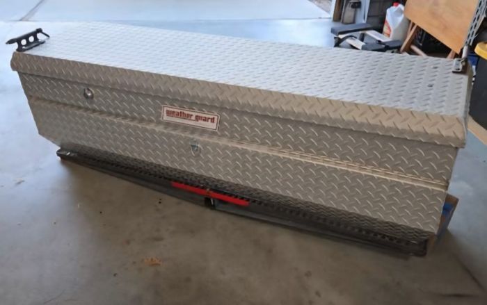 It's a Weather Guard toolbox bolted to a hitch mounted rack. It works great for luggage or could also hold game. Seals very well. Has new struts for the lid. Has two mounts on top for bikes. Box is 62x20x20. Comes with 2 keys and locks up tight. The box alone would be $400.