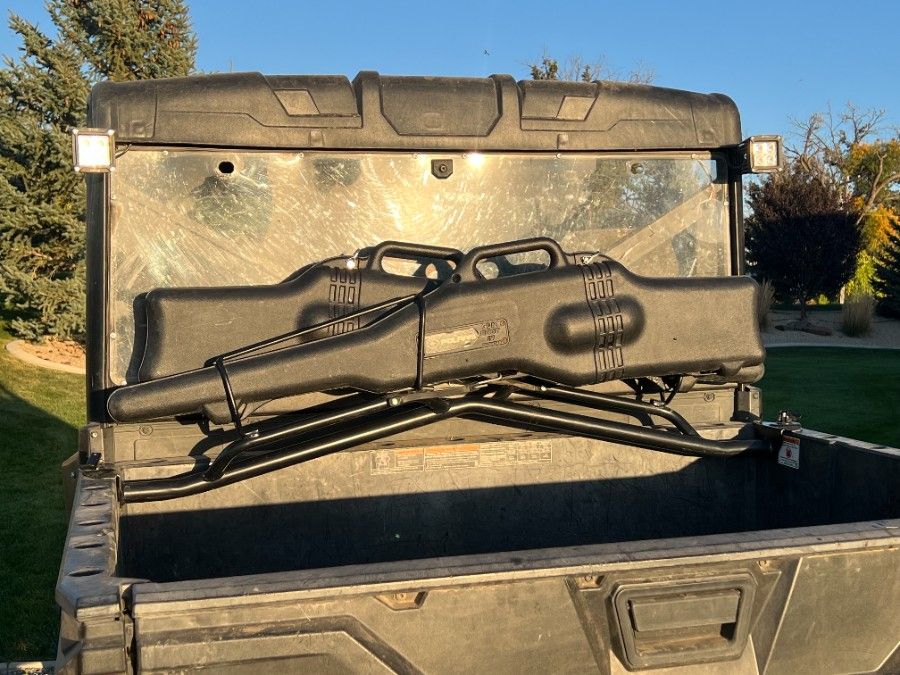 This dual gun rack mounts easy to the bed of a Polaris Ranger.