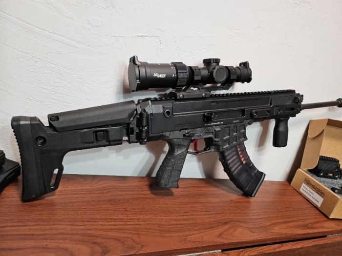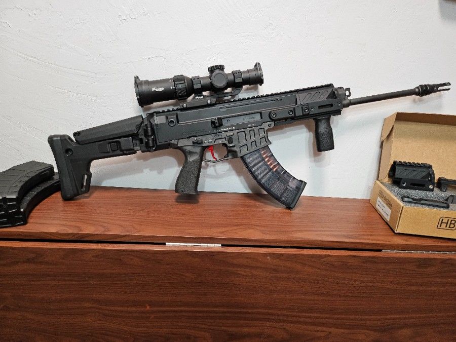 Excellent condition CZ bren 2ms 7.62x39 14.5" pin and welded NOX AK 7.62 14x1LH QD muzzle brake. Magpul fore grip, CZ trigger upgrade, F5ACR adjustable Stock, new Sig sauer tango 1x4 lpvo scope, cz stock adapter. Also included 5 extra magazines, a second-hand gaurd and extras. $3100 invested will sell for $2500. Trades welcome or trades with cash.