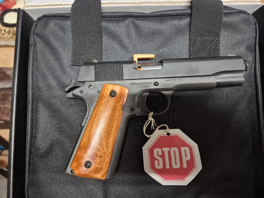 Unfired. Brand new! Rock Island. 45 acp 1911. 8+1 semi auto with 1 mag and range bag. New In box. Cash only. No trades. $500 firm. Text preferred. 2zero8five09nine6five9.