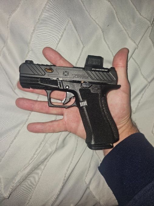 Shadow Systems cr920x for sale. Includes original box, 2 15 round mags, (3 holsters) 1 bravo concealment IWB holster, 1 bravo concealment OWB holster, and 1 minimalist DeSantis IWB holster. Comes with holosun eps carry red 6. Will sell for $675 without optic, or $900 with. It only has 400 rounds through it, and has been comfortable and reliable. Looking to buy a DA/SA for my concealed carry is only reason I'm selling. Brand Shadow Systems Main Model Shadow Systems CR920X Model CR920X ELITE OPTIC CUT FLUTED BRONZE BBL Caliber 9mm Capacity 15 + 1 Type Pistol Action Striker Fired Finish Black Nitride Sight FS: Green Tritium RS: Black Safety No Manual Safety Barrel Length 3.41" Overall Length 6.54" Weight 2.75 lbs. Number Of Mags 2