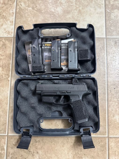 Like new with box. Sig 365xl with Sig red dot optic and Sig red dot grip. All sighted in and extremely accurate. Also comes with 3 mags and custom iwb holster for the Sig red dot grip.